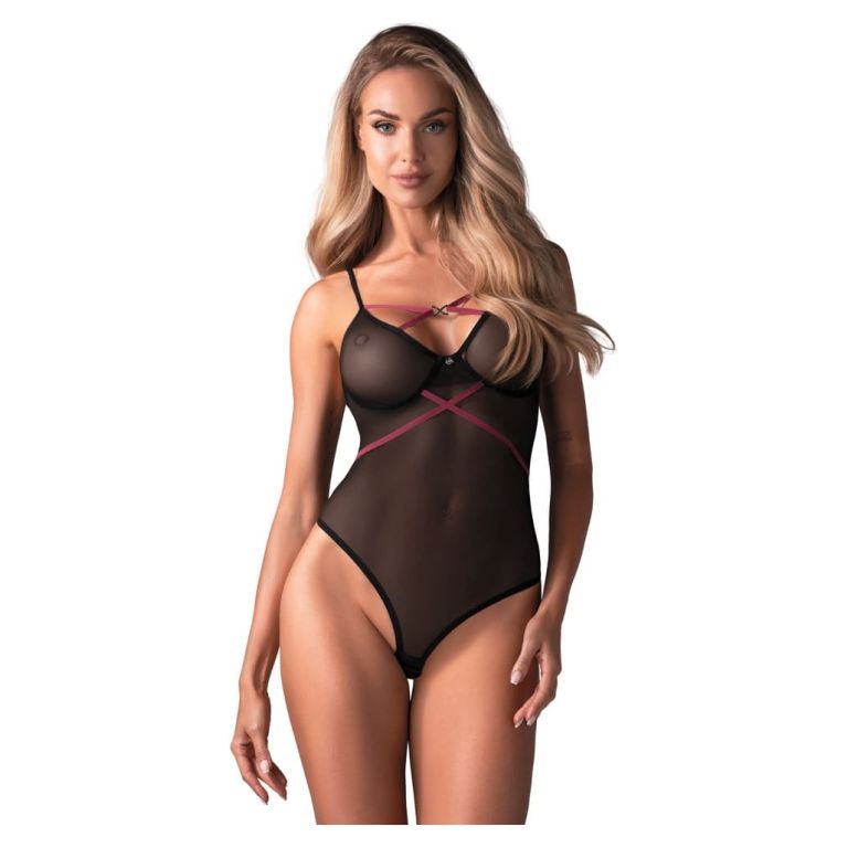 Kombinimi me mëngë të gjata dhe i ngushtë në lëkurë Kink Royal nga Noir është në një ngjyrë të kuqe bordo që të lë pa frymë. Është gjithashtu i dekoruar me printim të lëmuar me tufa. Është i butë dhe elastik për një përshtatje shumë të rehatshme dhe liri lëvizjeje. Është i prerë shumë poshtë në zonën e dekoltesë dhe ka gjithashtu një zinxhir diskret mbi ijë.