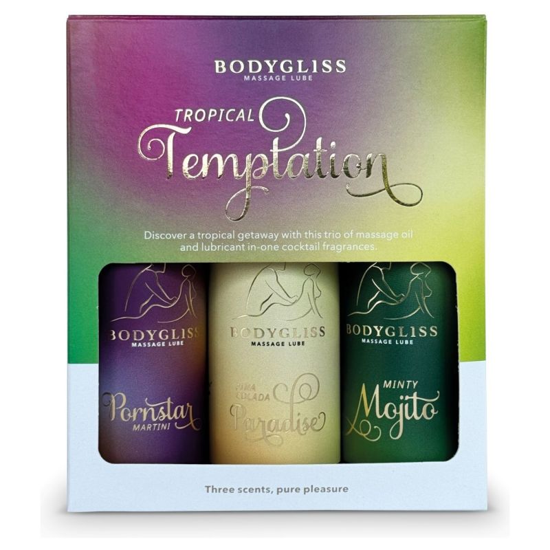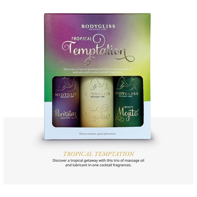 Lubrifikant dhe vaj masazhi BodyGliss Tropical Temptation 3pc