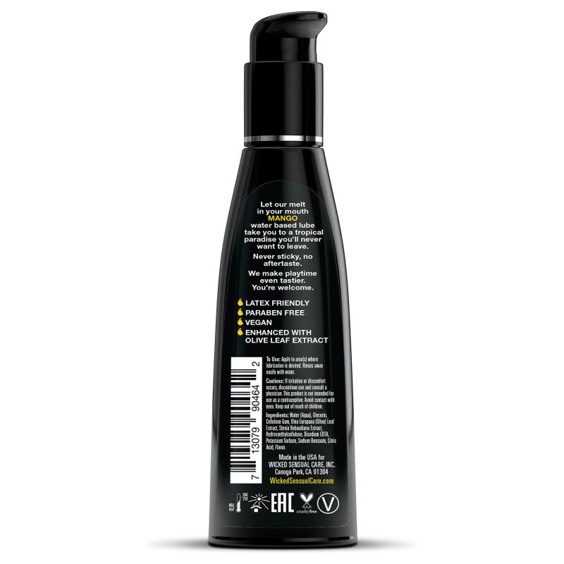 Një arsye më shumë për të lëpirë buzët! Zgjohuni dhe shkëlqeni me lubrifikantin me bazë uji me mango, një trajtim i shijshëm që ju lë të dëshironi më shumë. Asnjëherë ngjitës, pa shije të mbetur. Wicked e bën kohën e lojës edhe më të shijshme. Lubrifikantët me aromë Wicked janë të ëmbëlsuar me Stevia, duke i bërë ato të sigurta për lojëra orale, vaginale dhe anale.