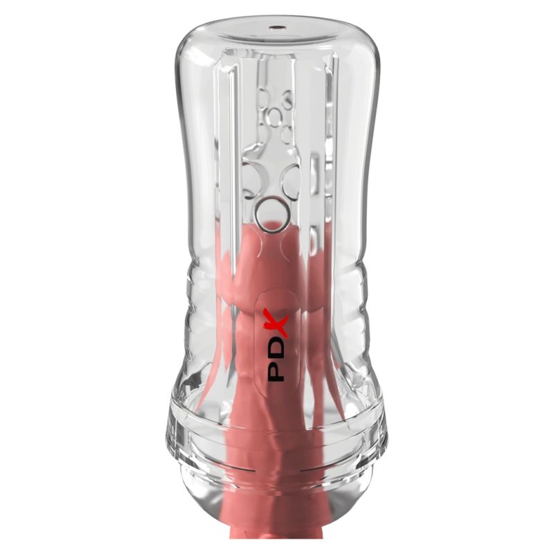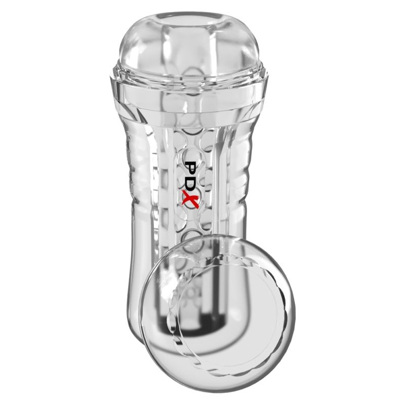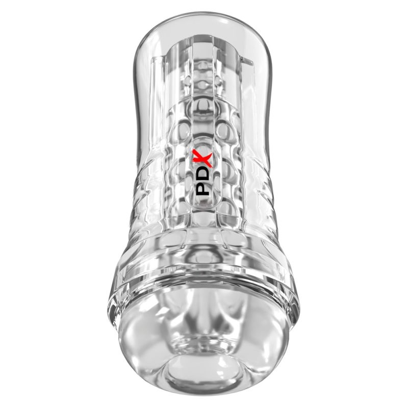 Masturbator transparent ViewTube Plus See-Thru EZ-Grip Stroker Clear nga PDX Elite në një kuti transparente të lehtë për t’u mbajtur me kapak mbrojtës. Penisi masazhohet përreth nga tekstura intensive në mbështjellësin ultra të butë. Për seks ritmik me dorë që të gjithë mund t’i shikojnë! Hapja e vakumit në fund të masturbatorit ofron ndjesi shtesë thithjeje, njësoj si seksi më i mirë me majë. Një gisht përdoret për të hapur dhe mbyllur hapjen për të ndryshuar fuqinë e thithjes (kontroll thithjeje).