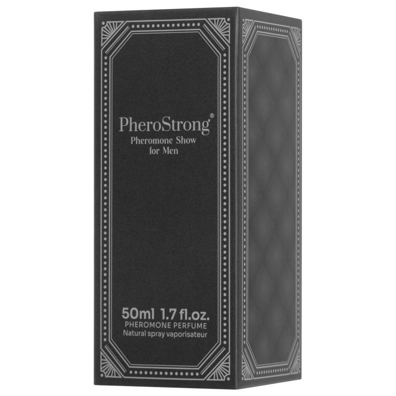 PheroStrong Show për meshkuj kombinon elegancën dhe forcën. Fillon me një notë të freskët dhe freskuese livandoje – një interpretim i përjetshëm, por modern. Nota e zemrës është e pasur dhe sensuale, ndërsa baza shpaloset në benzoinë të fuqishme dhe rrëshinore. Nota kryesore: Livando Nota të zemrës: Fasule Tonka Nota bazë: benzoinë