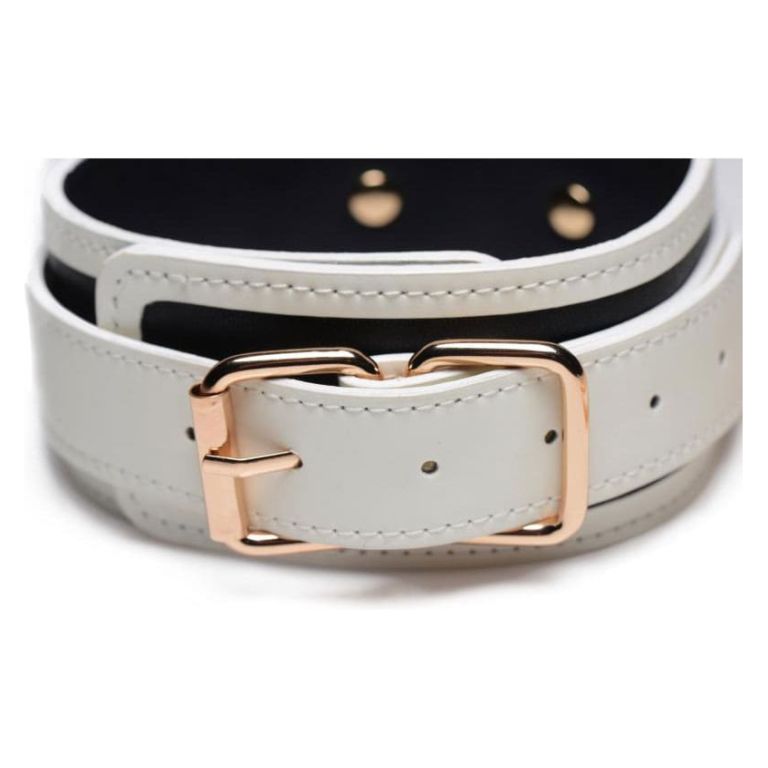 Jepini pamjes suaj të çuditshme një shtytje vezulluese me këtë choker të zi nga Strict. Diamantët e kuq vezullues krijojnë një pamje mahnitëse. Falë unazës së madhe, mund ta kombinoni me aksesorë të ndryshëm dhe litarë të skllavërisë.