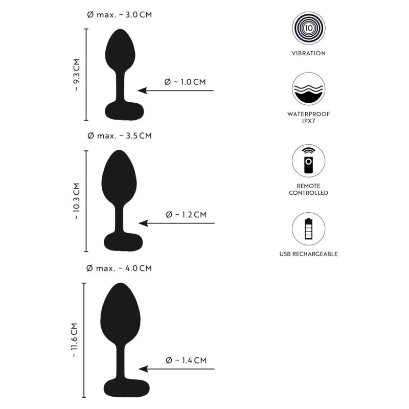 Seti i Tapave RC me Vibrim nga ANOS gjithashtu vjen me një telekomandë praktike. Në set ka 3 tapa vibro me madhësi të ndryshme që ofrojnë kënaqësi me derën e pasme dhe stërvitje emocionuese shtrirjeje. Vibrimet e fuqishme dhe intensive rrisin kënaqësinë anale dhe mund të kontrollohen lehtësisht përmes telekomandës. Telekomanda ka një rreze prej 5 metrash, që do të thotë se mund të kontrollohet edhe nga një partner. Çdo tapë ka 10 mënyra dridhjeje dhe kjo do të thotë se do të ketë shpejtësinë e duhur për të gjithë. Vibrimet mund të kontrollohen gjithashtu direkt në tapa. Tapat janë ideale për argëtim të këndshëm anal në vaskë ose dush sepse janë të papërshkueshme nga uji.