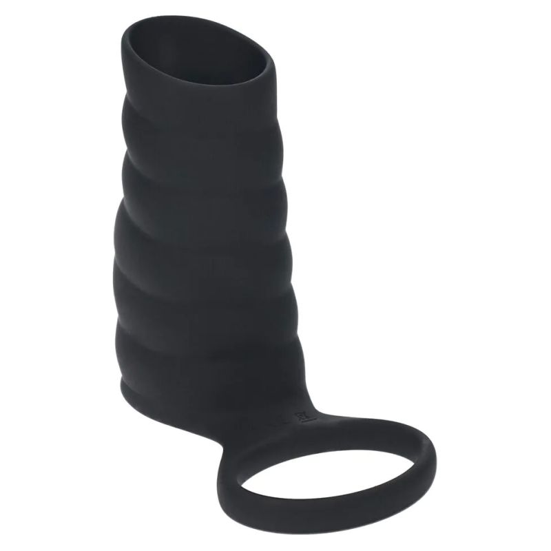 Vibrating Ribbed Silicone Cock Sleeve and Ball Ring