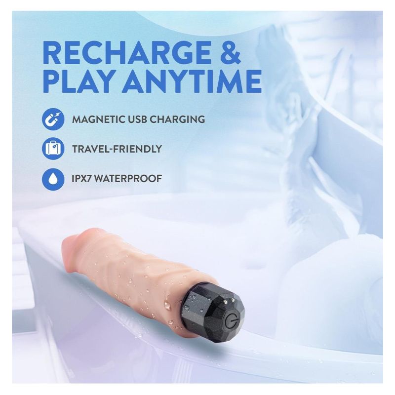 Filloni festën me Au Naturel Big Easy! Ky dildo vibrues 9” flirtues është gjithmonë gati për një kohë të çmendur, duke kombinuar energjinë lozonjare me realizmin jetësor për një përvojë thellësisht të kënaqshme. I krijuar për t’iu përshtatur trupit tuaj, boshti fleksibël lëviz me ju, duke siguruar kënaqësi në çdo pozicion. I projektuar me një bërthamë të brendshme të lëvizshme që mban formën e saj, Big Easy ofron kontroll të plotë mbi këndin dhe presionin. Shtresa e butë e jashtme dhe qendra e fortë krijojnë një ndjesi realiste që të jep kënaqësi me çdo përdorim. Forma e tij e skalitur dhe perimetri i kënaqshëm ofrojnë një ndjesi të plotë trupore, perfekte për ata që dëshirojnë diçka më zhytëse. Eksploroni 10 mënyra dridhjeje të thella dhe të zhurmshme që variojnë nga pulset e buta deri te intensiteti i qëndrueshëm. Me dizajnin e tij 100% të sigurt për trupin, Big Easy është plotësisht i papërshkueshëm nga uji dhe mund të ripenisikohet me USB për kënaqësi pa mundim. Pavarësisht nëse po eksploroni ndjesi të reja apo po shtoni një shkëndijë në rutinën tuaj, lejoni që Big Easy të sjellë fuqinë, fleksibilitetin dhe argëtimin për të vazhduar festën.