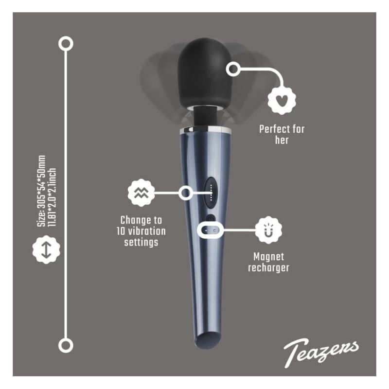 Trajtojeni veten me dridhje të fuqishme! Ky vibrator i madh me shkopinj ka një motor shtesë të fuqishëm për dridhjet më të mira. Me kokën e tij të madhe e të rrumbullakët, vibratori mund të përdoret në mënyra të ndryshme. Vibratori i shkopit është i pajisur me 5 shpejtësi dhe 5 modele që mund të kontrollohen me butonat e shtypjes në dorezë. Lodra mund të rimbushet me kabllon magnetike të penisikimit të përfshirë.